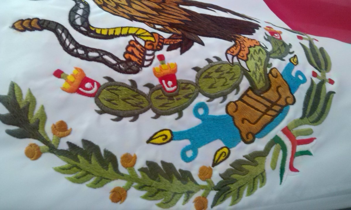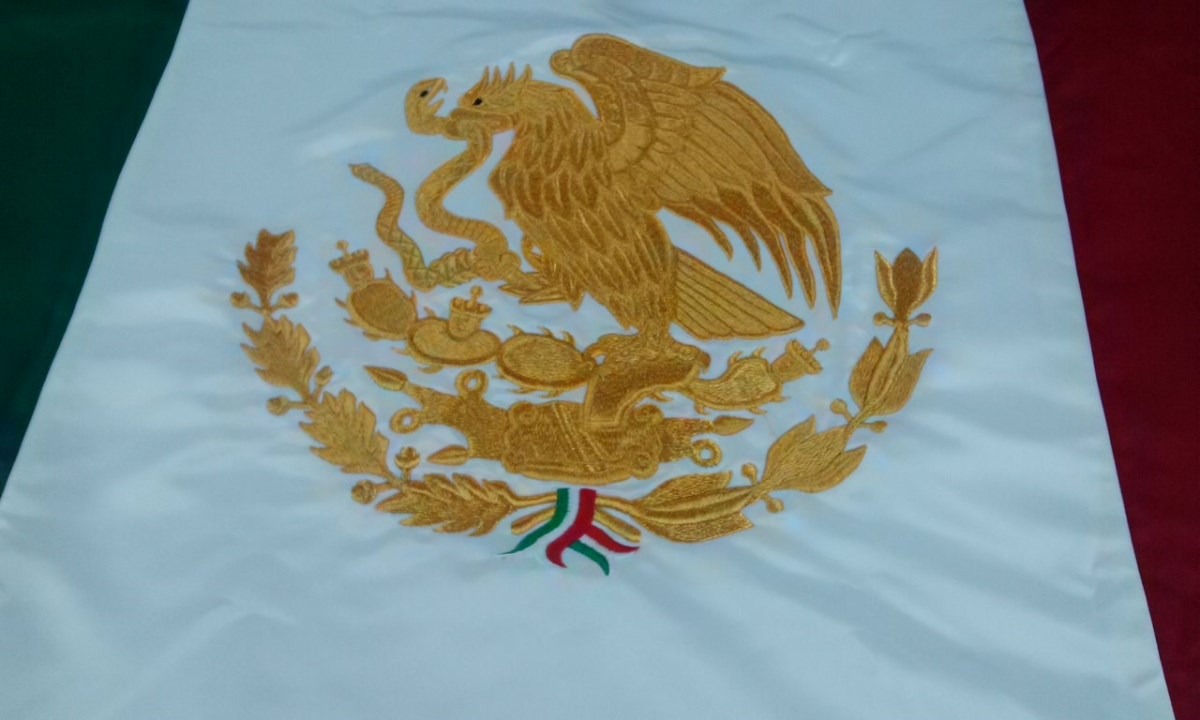 Bandera de MÉXICO confeccionada en tela de Razo autentico, doble cara, medidas de 90x1.58 100% bordada a color en ambas caras, escudo también con sus medidas reglamentadas.